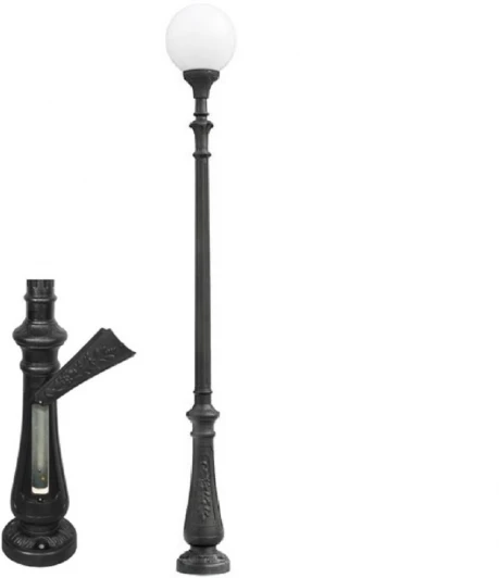 Парковый фонарь FUMAGALLI большого размера серии GLOBE 400, модель NEBO/GLOBE 400. Парковый фонарь с 1 светильником, большого размера, на классическом столбе NEBO высотой 2,5 м (+высота фонаря). Изготовлен в Италии, по уникальным технологиям "FUMATECH" из современного композитного полимера RESIN. Этот материал в 5 раз прочнее силумина, не ржавеет, не окисляется, не выгорает на солнце, его не нужно красить. Все светильники пыле-влаго защищены по стандарту IP65 (Пыленепроницаемые, защита от водяных струй с любого направления). Рассеиватель выполнен из антивандального, не мутнеющего и не горючего PMMA (ПолиМетилМетаАкрилат). Срок службы светильника - не менее 20 лет. Температура использования от -60 до +90. В серии GLOBE 400 есть ландшафтные фонари в настенном (OFIR/GLOBE 400, ADAM/GLOBE 400) и наземном исполнении (TABOR/GLOBE 400, HOREB/GLOBE 400) со столбами разной высоты, с разным количеством и конфигурацией голов. Консоли настенных фонарей и кронштейны светильников на столбах освещения устанавливаются в положение "вверх" и "вниз". Столбы имеют в основе мощную стальную трубу с двойной оцинковкой и монтажный люк. Закладные элементы- в комплекте. При заказе требуется выбрать цвет корпуса и цвет плафона.
