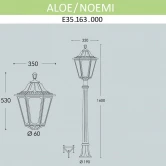 Садово-парковый фонарь FUMAGALLI серии NOEMI, модель ALOE/NOEMI. Садовый фонарь с 1 венчающим светильником большого размера в на классическом садовом столбике ALOE высотой 1,1 м (+высота фонаря). Предназначен для освещения парковых дорожек, cкверов, садовых и ландшафтных композиций, и других общественных пространств. Изготовлены в Италии, по уникальным технологиям "FUMATECH" из современного композитного полимера RESIN. Этот материал в 5 раз прочнее металла, не ржавеет, не окисляется, не выгорает на солнце, его не нужно красить. Все светильники пыле-влаго защищены по стандарту IP55 (Пылезащищенные, защита от водяных струй с любого направления). Рассеиватель выполнен из антивандального, не мутнеющего и не горючего PMMA (ПолиМетилМетаАкрилат). Срок службы светильника - не менее 20 лет. Температура использования от -60 до +90. В серии NOEMI есть садовые фонари в настенном (OFIR/NOEMI, MIRRA/NOEMI) подвесном (SICHEM/NOEMI) и наземном исполнении (IAFAET.R/NOEMI, ALOE.R/NOEMI, ARTU/NOEMI, GIGI/NOEMI, RICU/NOEMI, NEBO/OFIR/NOEMI 1L, NEBO/OFIR/ANNA 2L, TABOR/ADAM/NOEMI 3L) со столбами разной высоты, с разным количеством и конфигурацией голов. Консоли настенных фонарей и кронштейны светильников на столбах освещения могут устанавливаться в положение вверх и вниз. Столбы выше 150 см имеют в основе мощную стальную трубу с двойной оцинковкой. При заказе требуется выбрать цвет корпуса, цвет плафона и тип патрона (Е-27 или LED GX-53). Возможен светодиодный вариант. По стилю и дизайну серия уличных светильников NOEMI похожа на светильники среднего размера серии RUT и на светильники малого размера серии ANNA. По размеру относится к большим парковым светильникам как серия SIMON и GLOBE 400.