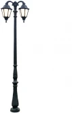 Парковый фонарь FUMAGALLI большого размера серии NOEMI, модель TABOR OFIR/NOEMI 2L. Парковый фонарь с 2 светильниками большого размера, на консолях OFIR среднего размера, установленных в положение "вниз", на классическом столбе TABOR высотой 3,0 м. Изготовлены в Италии, по уникальным технологиям "FUMATECH" из современного композитного полимера RESIN. Этот материал в 5 раз прочнее металла, не ржавеет, не окисляется, не выгорает на солнце, его не нужно красить. Все светильники пыле-влаго защищены по стандарту IP55 (Пылезащищенные, защита от водяных струй с любого направления). Рассеиватель выполнен из антивандального, не мутнеющего и не горючего PMMA (ПолиМетилМетаАкрилат). Срок службы светильника - не менее 20 лет. Температура использования от -60 до +90. В серии NOEMI есть садовые фонари в настенном (OFIR/NOEMI, MIRRA/NOEMI) подвесном (SICHEM/NOEMI) и наземном исполнении (IAFAET.R/NOEMI, ALOE.R/NOEMI, ARTU/NOEMI, GIGI/NOEMI, RICU/NOEMI, NEBO/OFIR/NOEMI 1L, NEBO/OFIR/ANNA 2L, TABOR/ADAM/NOEMI 3L) со столбами разной высоты, с разным количеством и конфигурацией голов. Консоли настенных фонарей и кронштейны светильников на столбах освещения могут устанавливаться в положение вверх и вниз. Столбы выше 150 см имеют в основе мощную стальную трубу с двойной оцинковкой. При заказе требуется выбрать цвет корпуса, цвет плафона и тип патрона (Е-27 или LED GX-53). Возможен светодиодный вариант. По стилю и дизайну серия уличных светильников NOEMI похожа на светильники среднего размера серии RUT и на светильники малого размера серии ANNA. По размеру относится к большим парковым светильникам как серия SIMON и GLOBE 400.