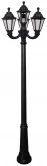 Садово-парковый фонарь FUMAGALLI среднего размера серии RUT, модель RICU OFIR/RUT 3L+1. Садовый светильник с 3 фонарями RUT на консолях среднего размера OFIR + венчающий светильник, установленных на столбе RICU высотой 2,0 м (+высота фонаря). Предназначен для освещения парковых дорожек, cкверов, садовых и ландшафтных композиций, и других общественных пространств. Используется в качестве основного уличного освещения на городских улицах и площадях. Изготовлены в Италии, по уникальным технологиям "FUMATECH" из современного композитного полимера RESIN. Этот материал в 5 раз прочнее металла, не ржавеет, не окисляется, не выгорает на солнце, его не нужно красить. Все светильники пыле-влаго защищены по стандарту IP55 (Пылезащищенные, защита от водяных струй с любого направления). Рассеиватель выполнен из антивандального, не мутнеющего и не горючего PMMA (ПолиМетилМетаАкрилат). Срок службы светильника - не менее 20 лет. Температура использования от -60 до +90. В серии RUT есть садовые фонари в настенном (OFIR/RUT, MIRRA/RUT) подвесном (SICHEM/RUT) и наземном исполнении (IAFAET.R/RUT, ALOE.R/RUT, ARTU/RUT, GIGI/RUT, RICU/RUT, NEBO/OFIR/RUT 1L, NEBO/OFIR/ANNA 2L, TABOR/ADAM/RUT 3L) со столбами разной высоты, с разным количеством и конфигурацией голов. Консоли настенных фонарей и кронштейны светильников на столбах освещения могут устанавливаться в положение вверх и вниз. Столбы выше 150 см имеют в основе мощную стальную трубу с двойной оцинковкой. При заказе требуется выбрать цвет корпуса, цвет плафона. По стилю и дизайну серия уличных светильников RUT похожа на светильники большого размера серии NOEMI и малого размера серии ANNA . По размеру относится к средним парковым светильникам как серия CEFA и GLOBE 300.
