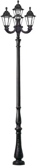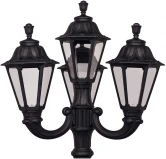 Парковый фонарь FUMAGALLI среднего размера серии RUT, модель TABOR OFIR/RUT 3L+1. Парковый фонарь с 3 светильниками на консолях OFIR + 1 венчающий, установленных на классическом столбе TABOR высотой 3,0 м (+высота фонарей на кронштейнах). Изготовлены в Италии, по уникальным технологиям "FUMATECH" из современного композитного полимера RESIN. Этот материал в 5 раз прочнее металла, не ржавеет, не окисляется, не выгорает на солнце, его не нужно красить. Все светильники пыле-влаго защищены по стандарту IP55 (Пылезащищенные, защита от водяных струй с любого направления). Рассеиватель выполнен из антивандального, не мутнеющего и не горючего PMMA (ПолиМетилМетаАкрилат). Срок службы светильника - не менее 20 лет. Температура использования от -60 до +90. В серии RUT есть садовые фонари в настенном (OFIR/RUT, MIRRA/RUT) подвесном (SICHEM/RUT) и наземном исполнении (IAFAET.R/RUT, ALOE.R/RUT, ARTU/RUT, GIGI/RUT, RICU/RUT, NEBO/OFIR/RUT 1L, NEBO/OFIR/ANNA 2L, TABOR/ADAM/RUT 3L) со столбами разной высоты, с разным количеством и конфигурацией голов. Консоли настенных фонарей и кронштейны светильников на столбах освещения могут устанавливаться в положение вверх и вниз. Столбы выше 150 см имеют в основе мощную стальную трубу с двойной оцинковкой. При заказе требуется выбрать цвет корпуса, цвет плафона. По стилю и дизайну серия уличных светильников RUT похожа на светильники большого размера серии NOEMI и малого размера серии ANNA . По размеру относится к средним парковым светильникам как серия CEFA и GLOBE 300.