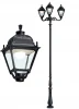 Парковый фонарь FUMAGALLI большого размера серии SIMON, модель HOREB ADAM/SIMON 3L. Парковый фонарь с 3 светильниками большого размера, на консолях ADAM большого размера, установленных на классическом столбе HOREB высотой 3,5 м (+высота фонарей на кронштейнах). Изготовлены в Италии, по уникальным технологиям "FUMATECH" из современного композитного полимера RESIN. Этот материал в 5 раз прочнее металла, не ржавеет, не окисляется, не выгорает на солнце, его не нужно красить. Все светильники пыле-влаго защищены по стандарту IP55 (Пылезащищенные, защита от водяных струй с любого направления). Рассеиватель выполнен из антивандального, не мутнеющего и не горючего PMMA (ПолиМетилМетаАкрилат). Срок службы светильника - не менее 20 лет. Температура использования от -60 до +90. В серии SIMON есть садовые фонари в настенном (OFIR/SIMON, MIRRA/SIMON) подвесном (SICHEM/SIMON) и наземном исполнении (IAFAET.R/SIMON, ALOE.R/SIMON, ARTU/SIMON, GIGI/SIMON, RICU/SIMON, NEBO/OFIR/SIMON 1L, NEBO/OFIR/ANNA 2L, TABOR/ADAM/SIMON 3L) со столбами разной высоты, с разным количеством и конфигурацией голов. Консоли настенных фонарей и кронштейны светильников на столбах освещения могут устанавливаться в положение вверх и вниз. Столбы выше 150 см имеют в основе мощную стальную трубу с двойной оцинковкой. При заказе требуется выбрать цвет корпуса, цвет плафона и тип патрона (Е-27 или LED GX-53). Возможен светодиодный вариант. По стилю и дизайну серия уличных светильников SIMON похожа на светильники среднего размера серии CEFA. По размеру относится к большим парковым светильникам как серия NOEMI и GLOBE 400.