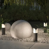 Литой алюминиевый корпус, цвет – темно серый. Плафон – матовый пластик. IP 44. Серия включает настенные и ландшафтные светильники.
