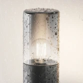 Алюминиевый корпус, цвет - графит. Световой элемент - тонированное стекло. Источник света - лампа с цоколем Е27. Универсальная серия для современных и классических экстерьеров. Защита IP54.