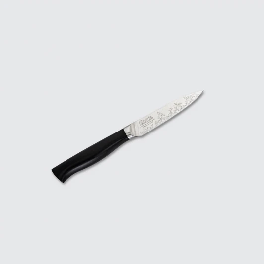 Кухонный нож 175 от китайского бренда Gottis для фигурной нарезки, очистки, разделки овощей, фруктов. Материалы изготовления: лезвие из кованой стали, рукоятка из пластика. Цвет: черный, с гравировкой. Характеристики: длина лезвия 9 см, угол заточки 25°, подходит для мытья в посудомоечной машине. Заказывайте Gottis 175 онлайн по низкой цене с гибкими условиями доставки на Fedomo.ru!