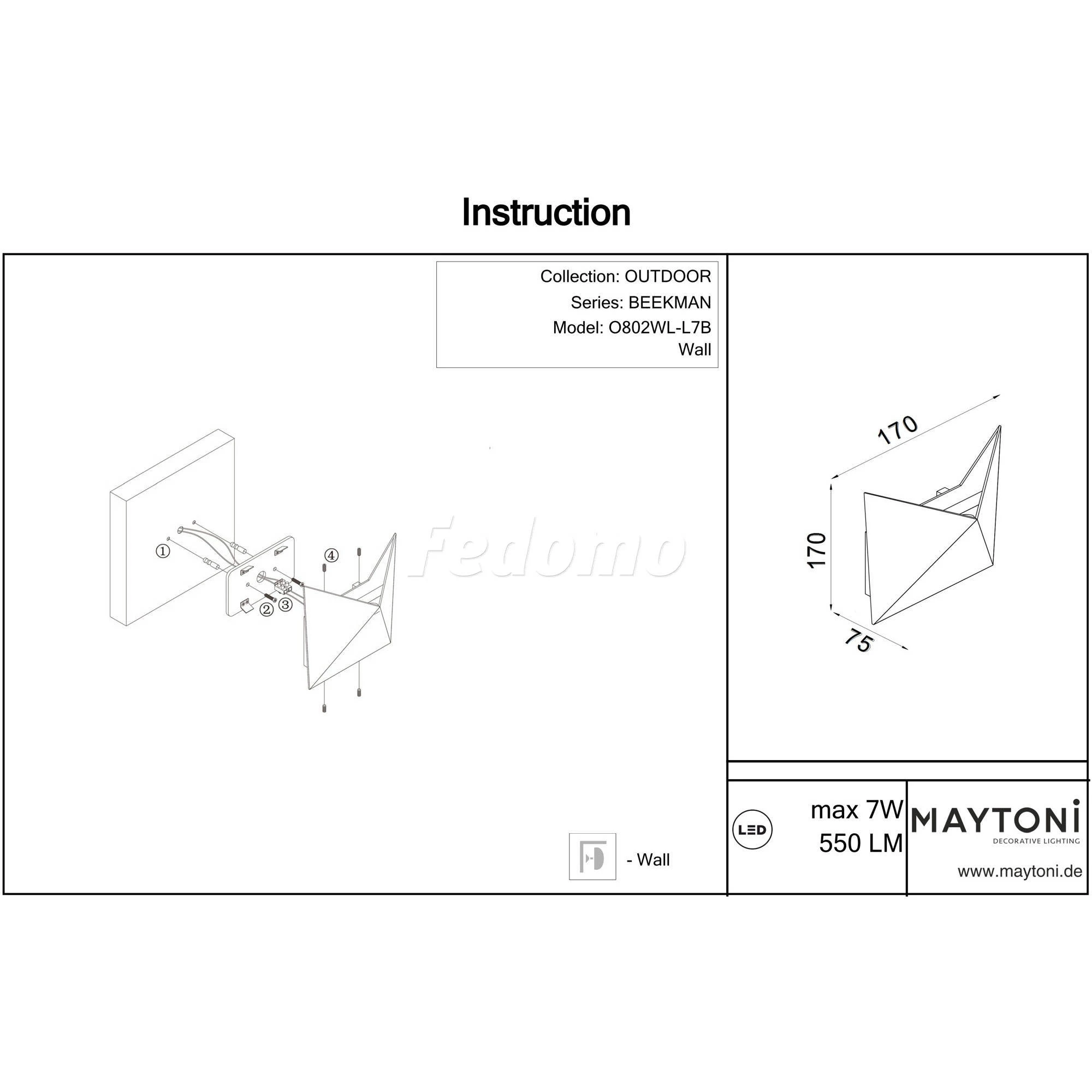 Настенный светильник уличный O802WL-L7B из серии Beekman от компании Maytoni украсит дачу, веранду и беседку, фасад, выполненные в стиле хай-тек, минимализм. Основной цвет и материал изготовления - черный металл. Светодиодная модель с мощностью лампочки 7W, напряжением 220V имеет 1 плафон. Габариты изделия: ширина - 170 мм, высота - 170 мм. Лучшая цена и условия доставки на Maytoni O802WL-L7B в интернет-магазине Fedomo.ru.