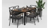 Материалы: всесезонный алюминий, ткань для улицы, тик. Цвет: каркас - темно-серый / подушки - антрацит / столешница - тик. Комплектация и габариты: Стол 180 * 90 * 75 - 1 шт, Стул 57 * 60 * 86 - 6 шт.