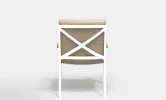 Материалы: всесезонный алюминий, ткань для улицы, тик. Цвет: каркас - белый / подушки - бежевые / столешница - тик. Комплектация и габариты: Стол 200 * 100 * 75 - 1 шт, Стул 57 * 60 * 86 - 6 шт.