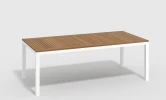 Материалы: всесезонный алюминий, ткань для улицы, тик. Цвет: каркас - белый / подушки - антрацит / столешница - тик. Комплектация и габариты: Стол 220 * 100 * 75 - 1 шт, Стул 57 * 60 * 86 - 6 шт.