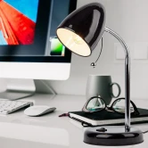 Настольный светильник ЭРА N-116-Е27-40W-BK с цоколем Е27 компактного размера для удобного размещения на столе. Может использоваться с лампой накаливания, компактной люминесцентной лампой (КЛЛ) или светодиодной (LED) лампой. У светильника металлические стойка и плафон, выключатель на основании. Высота расположения плафона регулируется сгибающейся стойкой, направление света - наклоном и поворотом плафона в любом направлении.
