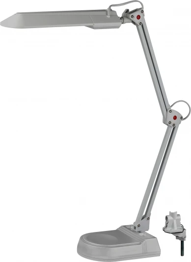 Светильник предназначен для использования с энергосберегающей лампой, лампа входит к комплект. Два варианта крепления в комплекте: основание, струбцина. Высота плафона регулируется двухсекционной сгибающейся стойкой.