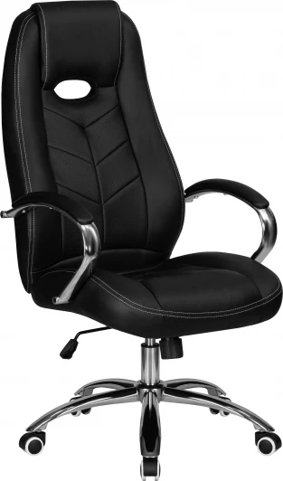 Компьютерное кресло для руководителя в современном стиле 129B_LMR TOBIAS, цвет сиденья черный, цвет основания хромированная сталь от китайского бренда Dobrin. Каркас изготовлен из металла, обивка из экокожи. Цвет – черный. Размеры: высота – 117 см, ширина – 64 см, глубина – 70 см, сиденье фигурное 58x50x47–55, спинка мягкая x75. Выдерживает нагрузку до 150 кг. Дополнительные опции: высота сиденья регулируется, механизм качания. Заказывайте Dobrin 129B_LMR TOBIAS, цвет сиденья черный, цвет основания хромированная сталь онлайн по низкой цене с гибкими условиями доставки на Fedomo.ru!