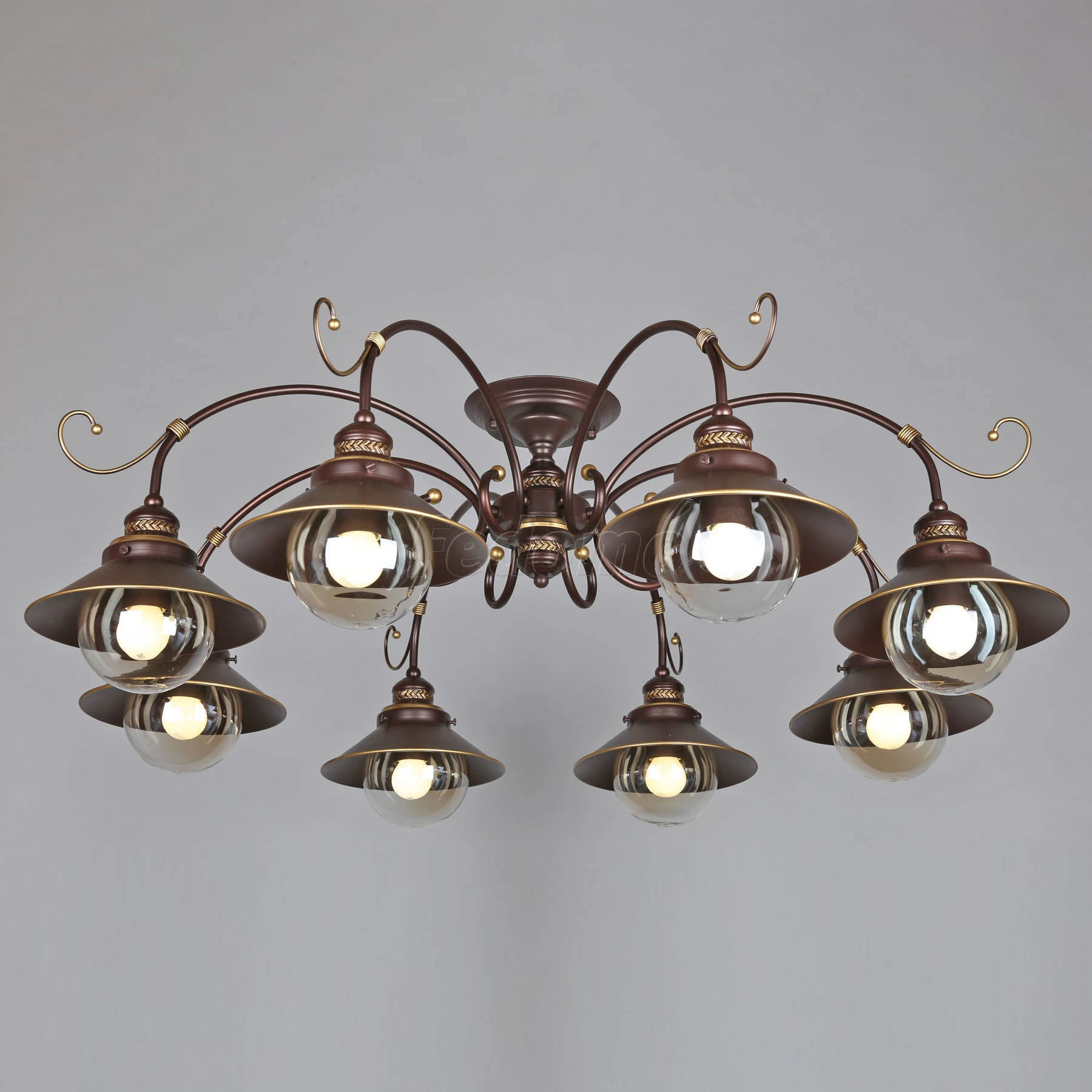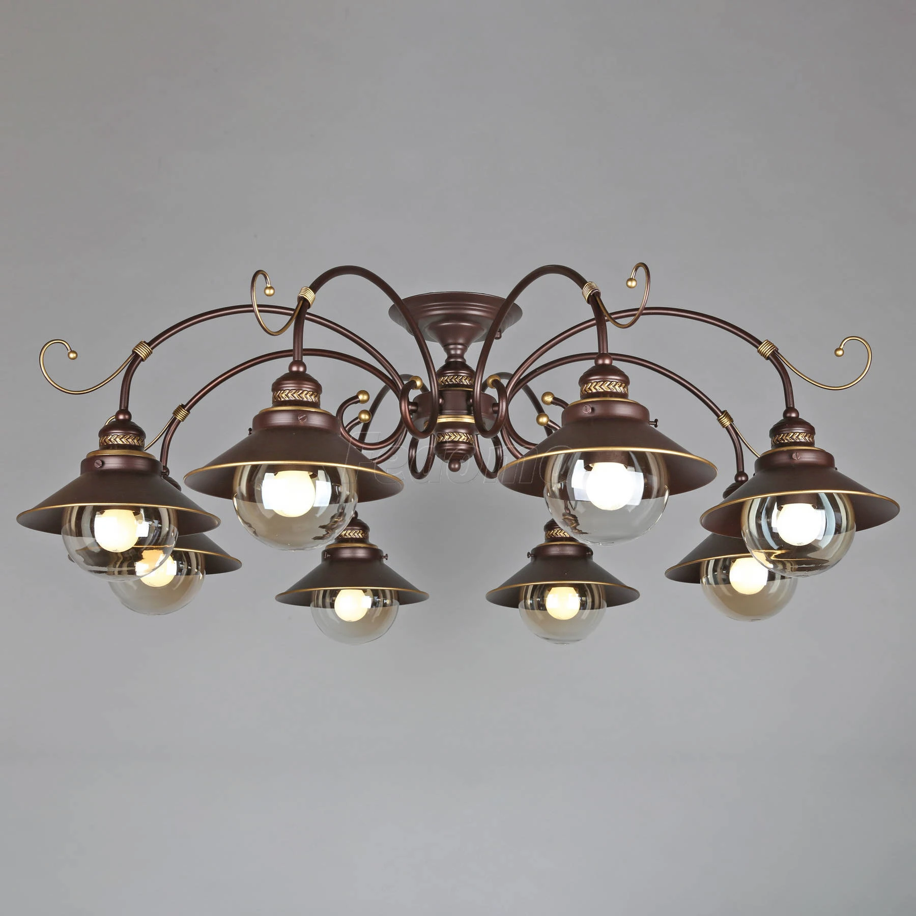Люстра потолочная OML-50407-08 из серии Fontelo от компании Omnilux устанавливается на монтажную пластину. Люстра прекрасно подойдет в качестве источника основного света для гостиной, кафе, кухни, дачи, оформленных в стиле кантри, лофт, индустриальный, американский винтаж. Основной цвет модели - коричневый, материал арматуры - металл. Люстра имеет 8 плафонов со свечением вниз, материал изготовления - стекло, металл. Модель оснащена цоколем E27 (18xE27), имеет 18 лампочек с общей мощностью 1080W и напряжением 220V. Светильник поддерживает подключение диммера. Габариты: высота - 380 мм, диаметр - 1000 мм. Лампочки в комплект не входят. Лучшая цена и условия доставки на Omnilux OML-50407-08 в интернет-магазине Fedomo.ru.