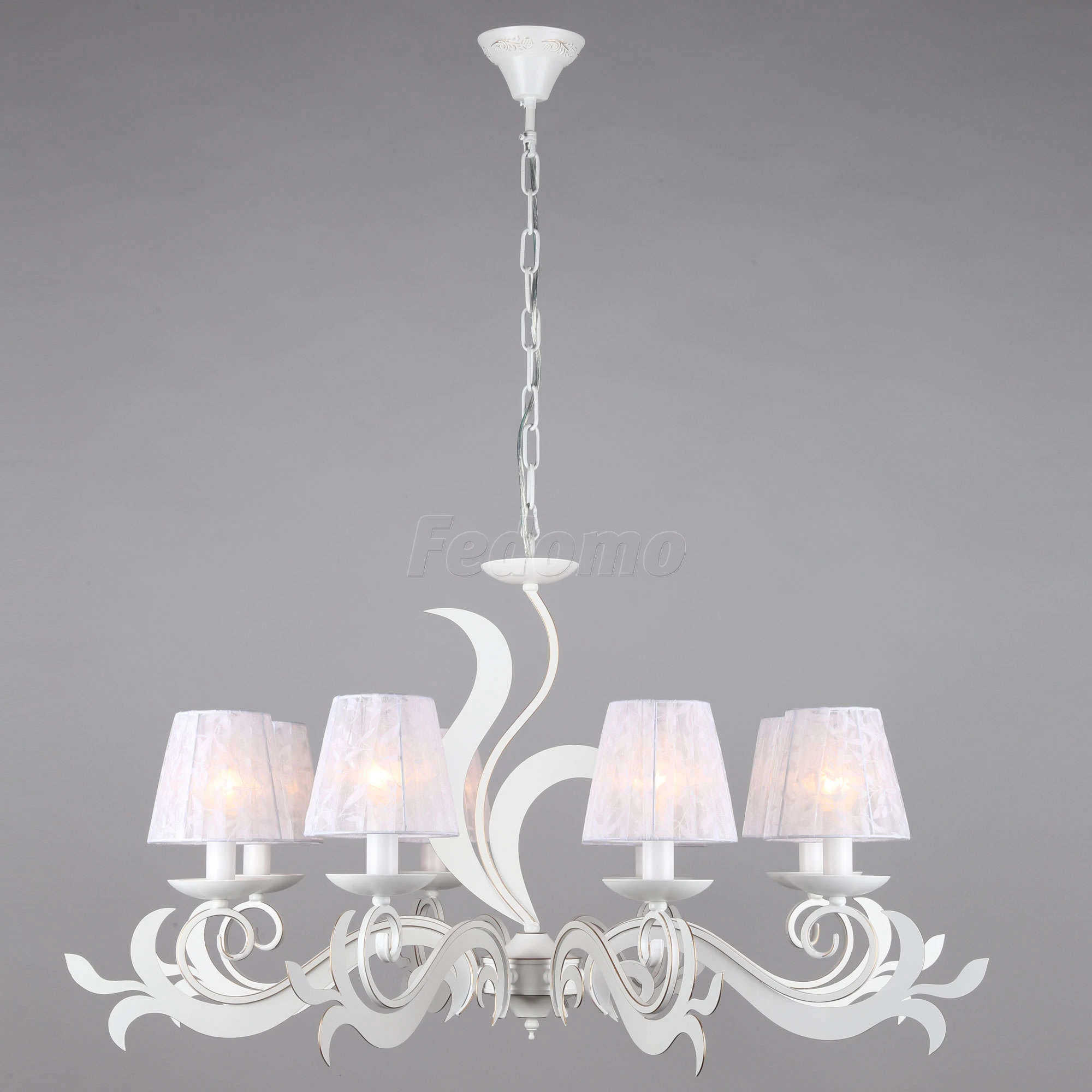 Люстра подвесная OML-75203-08 из серии Caulonia от компании Omnilux регулируется по высоте и устанавливается на металлический крюк. Классическая люстра прекрасно подойдет в качестве источника основного света для спальни, кухни, оформленных в стиле прованс. Основной цвет модели - белый, материал арматуры - металл. Люстра имеет 8 абажуров со свечением вверх, материал изготовления - ткань. Модель оснащена цоколем E14 (8xE14), имеет 8 лампочек с общей мощностью 320W и напряжением 220V. Светильник поддерживает подключение диммера. Габариты: диаметр - 930 мм. Лампочки в комплект не входят. Лучшая цена и условия доставки на Omnilux OML-75203-08 в интернет-магазине Fedomo.ru.