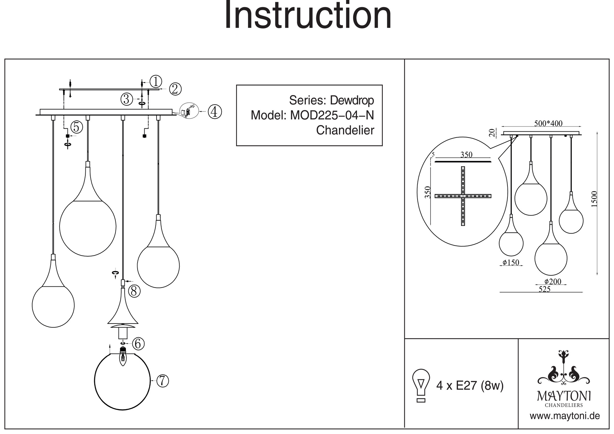 Каскадный подвесной светильник P225-PL-150-N из серии Maytoni Dewdrop от компании Maytoni подойдет для освещения гостиной, кафе, спальни, кухни, оформленных в стиле модерн. Основной цвет изделия - белый, материал плафона - стекло. Рассчитан на 4 лампочки с цоколем E27 и освещает площадь до 2 кв. м. Модель поддерживает установку диммера. Лучшая цена и условия доставки на Maytoni Dewdrop P225-PL-150-N в интернет-магазине Fedomo.ru.