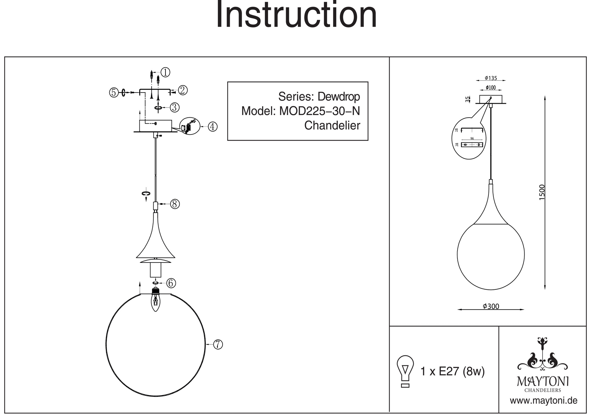 Подвесной светильник P225-PL-300-N из серии Maytoni Dewdrop от компании Maytoni подойдет для освещения гостиной, кафе, кухни, оформленных в стиле модерн. Основной цвет изделия - белый, материал плафона - стекло. Рассчитан на 1 лампочку с цоколем E27 и освещает площадь до 1 кв. м. Модель поддерживает установку диммера. Лучшая цена и условия доставки на Maytoni Dewdrop P225-PL-300-N в интернет-магазине Fedomo.ru.