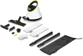 Предохранитель, Предохранительный клапан, Регулятор расхода пара-на рукоятке, Интегр воронка для заливки воды, Комплект для уборки пола, EasyFix + удлинительные трубки (2 × 0, 5 м), Ручная насадка, Точечное сопло, Мощное сопло, Круглая щетка-малая, Круглая щетка-большая, Сумка для принадлежностей, Микроволоконная салфетка для пола 2 шт, Микроволоконная обтяжка для ручной насадки 1 шт, Держатели для принадлежностей и возможность «парковки», Паровой шланг с пистолетом 2 м