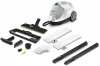 Система 2 резервуаров, Комплект для уборки пола EasyFix + удлинительные трубки (2 × 0, 5 м), Ручная насадка, Точечное сопло, Мощное сопло, Круглая щетка-малая, Круглая щетка-большая, Микроволоконная салфетка для пола 2 шт, Микроволоконная обтяжка для ручной насадки 1 шт, Держатели для принадлежностей и возможность «парковки», Паровой шланг с пистолетом 2 м, Встроенный выключатель, Накладка для чистки ковров