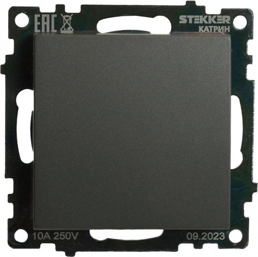 Выключатели одноклавишный STEKKER GLS10-7110-06, серия Катрин тип установки - скрытый, размер изделия 73*73*35мм., цвет графит, материал изделия поликарбонат, латунь. Номинальное напряжение 250 , номинальный ток 10А, IP20