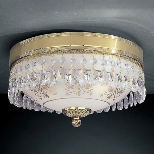 подойдет для классических и современных интерьеров объединяя богатство и тонкость итальянского вкуса. Плафон декорирован золотистым рисунком с шикарными хрустальными подвесками, материал основания латунь отличного качества.