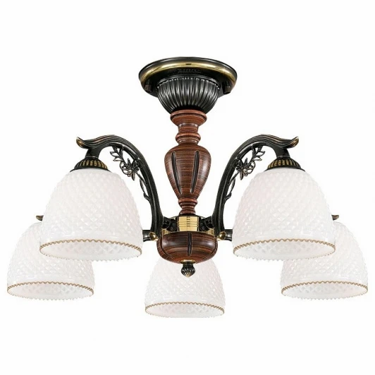 Люстра потолочная PL 8631/5 из серии 8631 от компании Reccagni Angelo устанавливается на монтажную пластину. Классическая люстра прекрасно подойдет в качестве источника основного света для гостиной, спальни, кухни, кабинета. Основной цвет модели - бронза, коричневый, материал арматуры - металл, дерево. Люстра имеет 5 плафонов со свечением вниз, материал изготовления - стекло. Модель оснащена цоколем E27 (5xE27), имеет 5 лампочек с общей мощностью 300W и напряжением 220V. Светильник поддерживает подключение диммера. Габариты: высота - 340 мм, диаметр - 600 мм. Лампочки в комплект не входят. Лучшая цена и условия доставки на Reccagni Angelo PL 8631/5 в интернет-магазине Fedomo.ru.