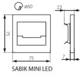 Подсветки для лестниц Kanlux SABIK – это современный дизайн в сочетании с привлекательным световым эффектом. Превосходная идея для подсветки лестниц и коридоров или для того, чтобы подчеркнуть дизайн помещений. Уникальный дизайн светильника обеспечивает равномерное излучение света. Мощность подсветки ступеней 0. 8Вт в вечернее время способствует созданию атмосферы уюта и не раздражает глаз. За счет встраиваемой конструкции лестничный светильник практически незаметен и идеально вписывается в общий интерьер. Встраиваемый светильник Kanlux SABIK имеет встроенный источник света SMD LED сроком службы 50 000 ч., что освобождает от замены светильника долгие годы. Напряжение светильника 12В, что означает необходимость питания с помощью трансформатора.