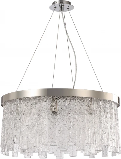Люстра подвесная 2155/11/08P серии Frostyle выполнена в стиле Модерн. Изготовлена из сплава металла, гальванизированного в цвет никель и декорирована подвесами из стекла, имитирующего лёд.