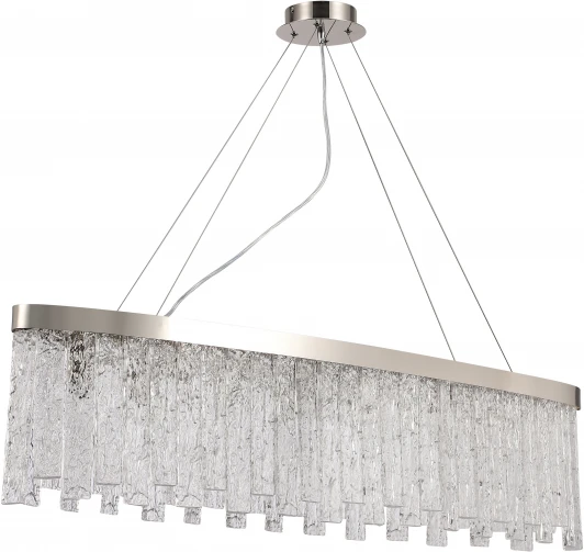 Люстра подвесная 2155/11/08PL серии Frostyle выполнена в стиле Модерн. Изготовлена из сплава металла, гальванизированного в цвет никель и декорирована подвесами из стекла, имитирующего лёд.
