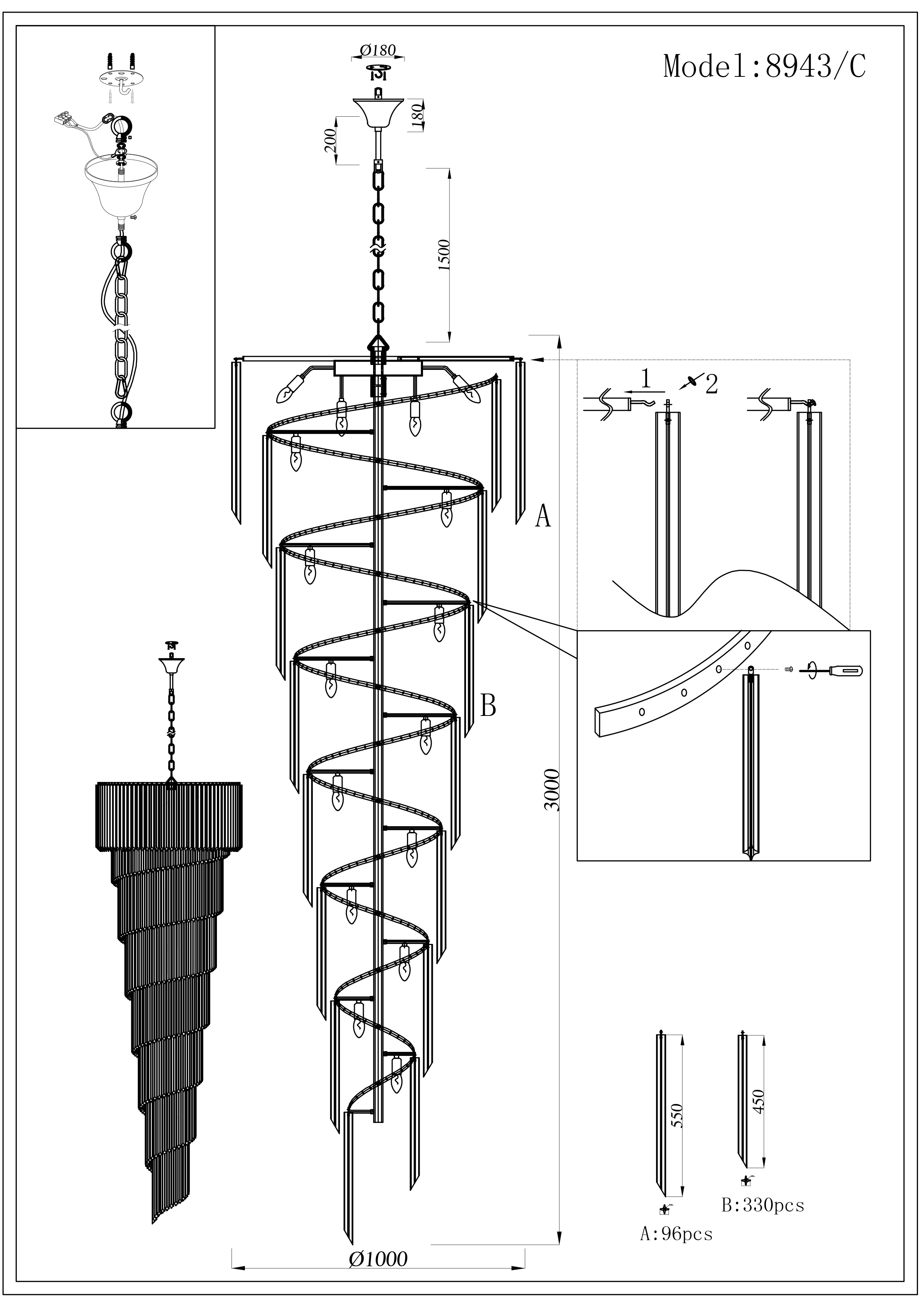 Подвесная люстра большая 8900 8943/C от американского бренда Newport изготовлена из металла в цвете никель. Рассчитана на лампочки с цоколем 43xE14, мощность 1720 Вт. Стиль – классический, модерн. Модель имеет рассеиватель из хрусталя, подходит для установки на потолке в гостиной, в прихожей и коридоре, в кафе, в холле, в спальне, на кухне, в зале. Питание от сети 220 В. Габариты: высота 3000 мм, диаметр 1000 мм. Заказывайте Newport 8943/C онлайн по низкой цене с гибкими условиями доставки на Fedomo.ru!