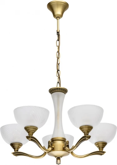 Люстра подвесная 317014705 из серии Афродита от компании MW-Light устанавливается на металлический крюк. Классическая люстра прекрасно подойдет в качестве источника основного света для гостиной, кафе, кухни, над обеденным столом, кабинета, дачи. Основной цвет модели - латунь, материал арматуры - металл, стекло. Люстра имеет 5 плафонов со свечением вверх, материал изготовления - матовое стекло. Модель оснащена цоколем E27 (5xE27), имеет 5 лампочек с общей мощностью 200W и напряжением 220V. Светильник поддерживает подключение диммера. Габариты: высота - 830 мм, диаметр - 580 мм, длина подвеса - 230 мм. Лампочки в комплект не входят. Лучшая цена и условия доставки на MW-Light 317014705 в интернет-магазине Fedomo.ru.