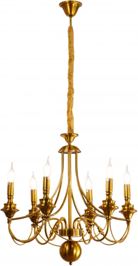 Подвесная люстра AM375 SP6 от бренда AM Group в виде подсвечника со свечами в цвете латунь. Рассчитана на лампочки с цоколем 6xE14, мощность 240 Вт. Стиль – классический. Подходит для установки на потолке в гостиной, на кухне, над обеденным столом, в прихожей и коридоре, в спальне, в зале. Освещаемая площадь до 12 кв. м. Питание от сети 220 В. Степень защиты от влаги и пыли IP20. Способ крепления – металлический крюк. Габариты: высота 1200 мм, диаметр 600 мм. Дополнительные функции: подходит для подключения к диммеру. Заказывайте AM Group AM375 SP6 онлайн по низкой цене с гибкими условиями доставки на Fedomo.ru!