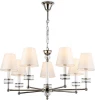 Подвесная люстра с абажурами и хрусталем из коллекции HIGH LIGHT. Модель LH71003 представлена в стиле неоклассика. Люстра выполнена из металла цвета никель, тканевых плафонов белого цвета и декорирована превосходным прозрачным хрусталем. Для данной модели подойдут лампы с цоколем Е14. Люстра будет прекрасным дополнением в любом помещении.