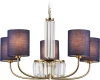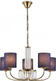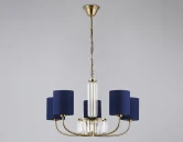 Подвесная люстра с абажурами из коллекции HIGH LIGHT. Модель LH71271 представлена в классическом стиле. Люстра выполнена из тканевых плафонов темно-синего цвета и декорирована превосходным прозрачным хрусталем, каркас изготовлен из металла цвета латунь. Для данной модели подойдут лампы с цоколем Е14. Люстра будет прекрасным дополнением в любом помещении.