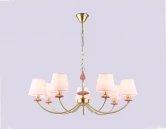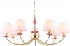 Подвесная люстра с абажурами из коллекции HIGH LIGHT. Модель LH75025 представлена в классическом стиле. Люстра выполнена из тканевых плафонов розового цвета, металлического каркаса цвета золота и декорирована элементами из керамики. Для данной модели подойдут лампы с цоколем Е14. Люстра будет прекрасным дополнением в любом помещении.