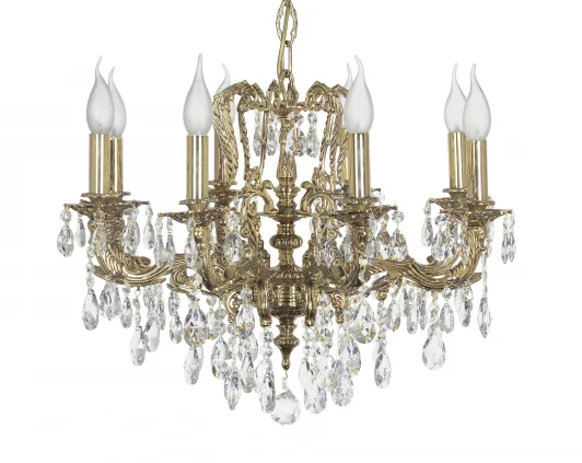 Люстра подвесная Aosta E 1.1.8.200 G из серии Aosta от компании Dio D'Arte устанавливается на металлический крюк. Классическая люстра в виде подсвечника украшена хрусталем Asfour и прекрасно подойдет в качестве источника основного света для гостиной, кафе, холла, оформленных в стиле барокко. Основной цвет модели - золото, материал арматуры - металл. Модель оснащена цоколем E14 (8xE14), имеет 8 лампочек с общей мощностью 320W и напряжением 220V. Светильник поддерживает подключение диммера. Габариты: высота - 450 мм, диаметр - 600 мм. Лампочки в комплект не входят. Лучшая цена и условия доставки на Dio D'Arte Aosta E 1.1.8.200 G в интернет-магазине Fedomo.ru.