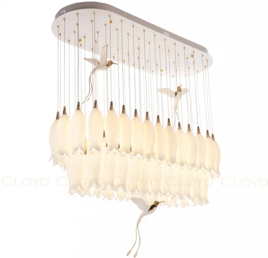 Подвесная люстра большая каскадная светодиодная с цветами и птичками 10814 из серии Argana от российского производителя Cloyd исполнена в цвете белый из металла и подходит для размещения на потолке в гостиной, кафе, холле в стиле флористика. Модель имеет плафон, цоколь LED, мощность 215W. Подходит для питания от напряжения 220V. Дополнительные опции: регулируемая высота. Способ крепления — монтажная пластина. В комплекте лампочки. Габариты: длина — 1100 мм, ширина — 400 мм, высота — 1280 мм. Заказывайте Cloyd 10814 онлайн по низкой цене с гибкими условиями доставки на Fedomo.ru!