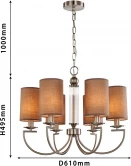 Подвесная люстра украшена декором из стекла Argo 2934-6P от немецкого бренда Favourite исполнена в коричневом цвете из металла. Модель имеет 6 абажуров из ткани и подходит для размещения в гостиной, спальне, кухне, над обеденным столом, кабинете в классическом стиле. Лампочки с цоколем 6xE14 и максимальной мощностью 240W освещают пространство площадью до 12 кв. м. Питание производится от сети 220V. Технические особенности: регулировка высоты, возможно подключение диммера. Способ крепления — на пластину. Диаметр — 610 мм. Заказывайте Favourite 2934-6P онлайн по низкой цене с гибкими условиями доставки на Fedomo.ru!