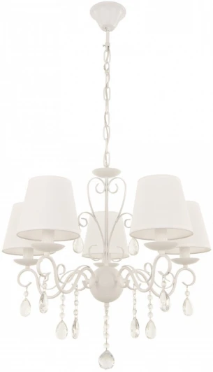 Подвесная люстра AM340369 340369/5 WT от российского бренда Arte Milano с хрустальными подвесками изготовлена из металла в белом цвете. Рассчитана на лампочки с цоколем 5xE14, мощность 200 Вт. Стиль – классический. Модель имеет 5 абажуров из ткани, подходит для установки на потолке в гостиной, на кухне, над обеденным столом, в прихожей и коридоре, в спальне, в зале. Освещаемая площадь до 10 кв. м. Питание от сети 220 В. Степень защиты от влаги и пыли IP20. Способ крепления – металлический крюк. Габариты: длина 500 мм, высота 500 мм, диаметр 600 мм. Заказывайте Arte Milano 340369/5 WT онлайн по низкой цене с гибкими условиями доставки на Fedomo.ru!