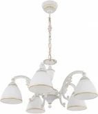 Подвесная люстра AM341837 341837/5 WT+G от российского бренда Arte Milano изготовлена из металла в золотом цвете. Рассчитана на лампочки с цоколем 5xE27, мощность 200 Вт. Стиль – классический. Модель имеет 5 плафонов из стекла, подходит для установки на потолке в гостиной, на кухне, над обеденным столом, в прихожей и коридоре, в спальне, в зале. Освещаемая площадь до 10 кв. м. Питание от сети 220 В. Степень защиты от влаги и пыли IP20. Способ крепления – металлический крюк. Габариты: длина 320 мм, высота 320 мм, диаметр 600 мм. Заказывайте Arte Milano 341837/5 WT+G онлайн по низкой цене с гибкими условиями доставки на Fedomo.ru!
