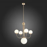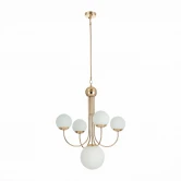 Подвесная люстра Avellino SL1504.203.05 от итальянского бренда ST Luce исполнена в золотистом цвете из металла. Модель имеет 5 плафонов из стекла и подходит для размещения в гостиной, кухне, кабинете, офисе в стиле модерн. Лампочки с цоколем 5xE27 и максимальной мощностью 300W освещают пространство площадью до 15 кв. м. Питание производится от сети 220V. Технические особенности: возможно подключение диммера. Способ крепления — на пластину. Диаметр — 600 мм, длина подвеса — 1260 мм. Заказывайте ST Luce SL1504.203.05 онлайн по низкой цене с гибкими условиями доставки на Fedomo.ru!