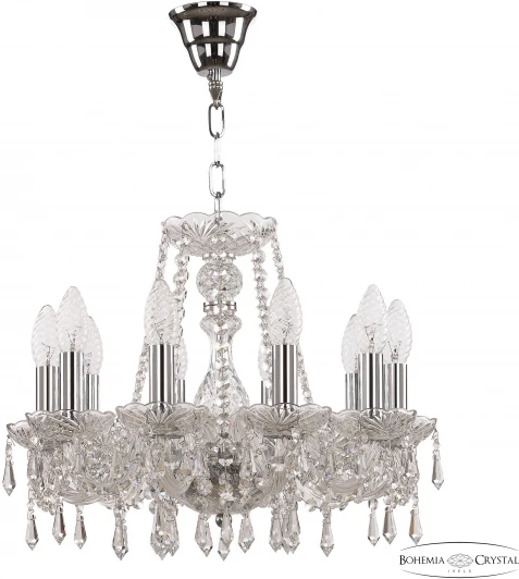 Подвесная люстра 104 104/10/141 Ni от чешского бренда Bohemia в виде подсвечника со свечами, с хрустальными подвесками изготовлена из металла, стекла в цвете никель. Рассчитана на лампочки с цоколем 10xE14, мощность 400 Вт. Стиль – классический. Подходит для установки на потолке в гостиной, в кафе, в холле, в спальне. Питание от сети 220 В. Степень защиты от влаги и пыли IP20. Способ крепления – металлический крюк. Габариты: высота 360 мм, диаметр 460 мм. Дополнительные функции: регулировка по высоте. Заказывайте Bohemia 104/10/141 Ni онлайн по низкой цене с гибкими условиями доставки на Fedomo.ru!