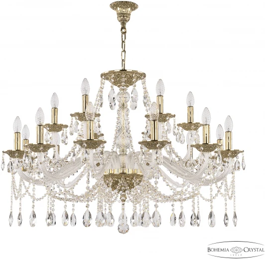 Подвесная люстра большая 1607 1607/12+6/360 G от чешского бренда Bohemia с хрустальными подвесками изготовлена из металла, стекла в золотом цвете. Рассчитана на лампочки с цоколем 18xE14, мощность 720 Вт. Стиль – классический. Подходит для установки на потолке в гостиной, в холле. Питание от сети 220 В. Степень защиты от влаги и пыли IP20. Способ крепления – металлический крюк. Габариты: высота 680 мм, диаметр 1000 мм. Дополнительные функции: регулировка по высоте. Заказывайте Bohemia 1607/12+6/360 G онлайн по низкой цене с гибкими условиями доставки на Fedomo.ru!
