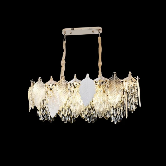 Шикарная подвесная люстра Citilux Darby CL309272 искусно украшена ниспадающим каскадом хрустальных подвесок и великолепно декорирована прекрасными стеклянными листьями. Корпус светильника металлический, овальной формы, благородного золотого оттенка. Этот удивительный образец красоты и элегантности станет настоящим украшением вашего интерьера. В изделии 15 ламп с цоколем Е14 максимальной мощностью для ламп. Подходит для всех видов потолков, в том числе натяжных, тип крепления – планка.