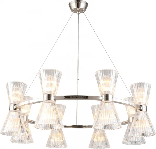 Подвесная люстра Aployt Elinor APL.801.13.16 от польского бренда Aployt исполнена в цвете хром из металла. Модель имеет 16 плафонов из стекла и подходит для размещения на потолке в гостиной, кухне, над обеденным столом, кабинете в классическом стиле. Лампочки с цоколем 16xE14 оснащены мощностью 40W и освещают площадь до 32 кв. м. Питание от сети 220V. Технические особенности: возможность подключения диммера. Установка производится на пластину. Габариты: высота — 1800 мм, диаметр — 850 мм. Заказывайте Aployt APL.801.13.16 онлайн по низкой цене с гибкими условиями доставки на Fedomo.ru!
