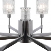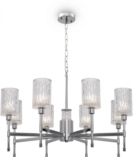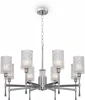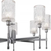 Строгие прямые линии в сочетании с изяществом неоклассики дают яркий, несколько эклектичный дуэт – эта серия приживется в различных стилевых решениях интерьера, как подчеркнуто классических, так и в современных. Хромированная металлическая арматура в сочетании с прозрачным стеклом дарит ощущение легкости и свежести. Интересно фактурное, рельефное исполнение плафонов – эта деталь добавляет композиции объема, многомерности и создает контраст с глянцевыми стеклянными рожками. Две люстры на 8/6 плафонов и бра позволяют организовать комплексное освещение пространства в единой стилистике.