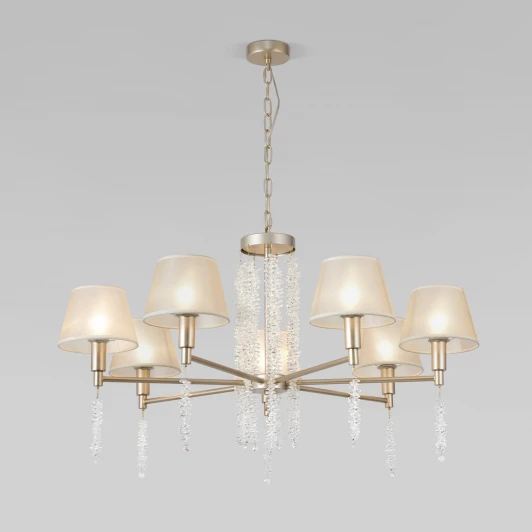 Подвесная люстра Charuel a064945 60148/7 матовое золото от бренда Eurosvet изготовлена из металла в золотом цвете. Рассчитана на лампочки с цоколем 7xE14, мощность 280 Вт. Стиль – классический, арт-деко. Модель имеет 7 абажуров из ткани, подходит для установки на потолке в гостиной, на кухне, над обеденным столом, в прихожей и коридоре, в спальне, в зале. Освещаемая площадь до 13 кв. м. Питание от сети 220 В. Степень защиты от влаги и пыли IP20. Способ крепления – монтажная пластина. Габариты: длина 890 мм, ширина 890 мм, высота 600 – 900 мм. Заказывайте Eurosvet a064945 60148/7 матовое золото онлайн по низкой цене с гибкими условиями доставки на Fedomo.ru!