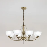 Люстра Франческа CL417283 в классическом стиле. Корпус металлический, с литыми рожками, цвет бронза. Плафоны стеклянные, полуматовые, со стильной прозрачной окантовкой. В изделии используются 8 ламп с цоколем Е27, максимальной мощностью для ламп накаливания 75Вт. Светодиодные лампы можно применять более яркие. Рассчитана на работу, как с одноклавишным, так и с двухклавишным выключателем. Подходит для всех типов потолков, в том числе натяжных.