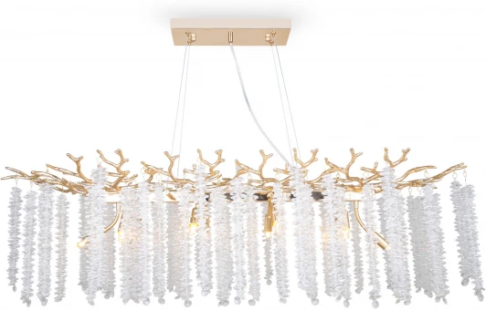 Подвесная люстра на штанге Mineral FR1010PL-10G1 от немецкого бренда Freya с листьями, в виде ветки изготовлена из металла прозрачного цвета. Рассчитана на лампочки с цоколем 10xG9, мощность 400 Вт. Стиль – арт-деко. Модель имеет 1 плафон из хрусталя, подходит для установки на потолке в гостиной, в кафе, в спальне, в магазине. Питание от сети 220 В. Степень защиты от влаги и пыли IP20. Способ крепления – монтажная пластина. Габариты: длина 1000 мм, ширина 400 мм, высота 400 – 1650 мм, диаметр 1000 мм. Дополнительные функции: регулировка по высоте. Заказывайте Freya FR1010PL-10G1 онлайн по низкой цене с гибкими условиями доставки на Fedomo.ru!