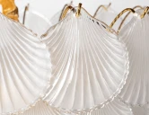 Если Вам нужно добавить интерьеру нотку оригинальности, остановите свой выбор на потолочной люстре для гостиной или спальни с подвесами, выполненными в форме створки раковины. При изготовлении декора мастера использовали современные технологии и методы ручной обработки, позволившие придать ему максимальное сходство с природным материалом. Основание оригинальной люстры выполнено в виде конуса с каскадным размещением декора. Кронштейн – деталь светильника, заслуживающая особого внимания. Создатели модели отказались от классического гладкого металла и придали ему плавную рельефность. Опора и кронштейн окрашены золотистой краской.