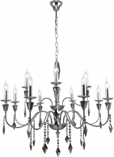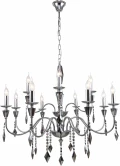 Люстра подвесная 1053/09/12P серии Grace выполнена в стиле Классика. Арматура изготовлена из сплава металла и гальванизирована в цвет хром. Декоративные элементы на центральной оси, рожках и подвесы выполнены из хрусталя дымчатого цвета.